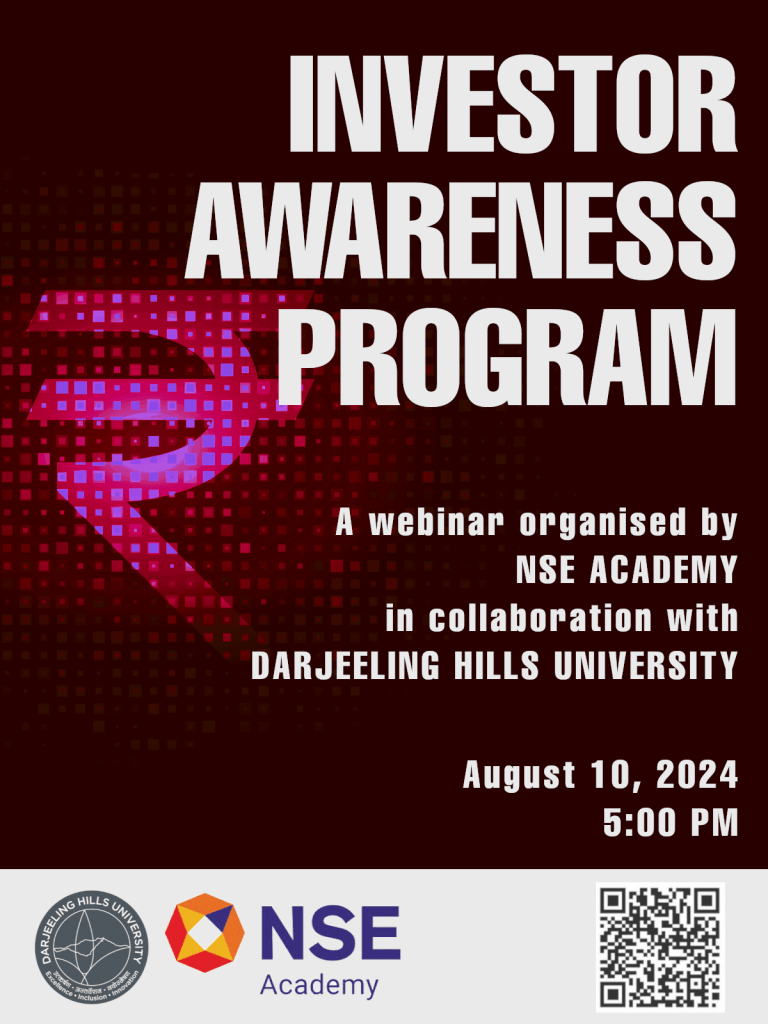 Darjeeling Hills University in collaboration with the National Stock Exchange’s NSE Academy organised a webinar on August 10, 2024. The webinar was was an investor awareness program for the participants.